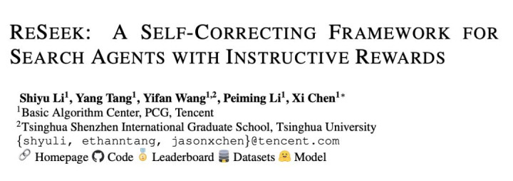 为了攻克这一难题,腾讯内容算法中心联合清华大学,近期提出 ReSeek 框架,它不是对 RAG 的简单改进,而是对 Search Agent 核心逻辑的一次重塑。