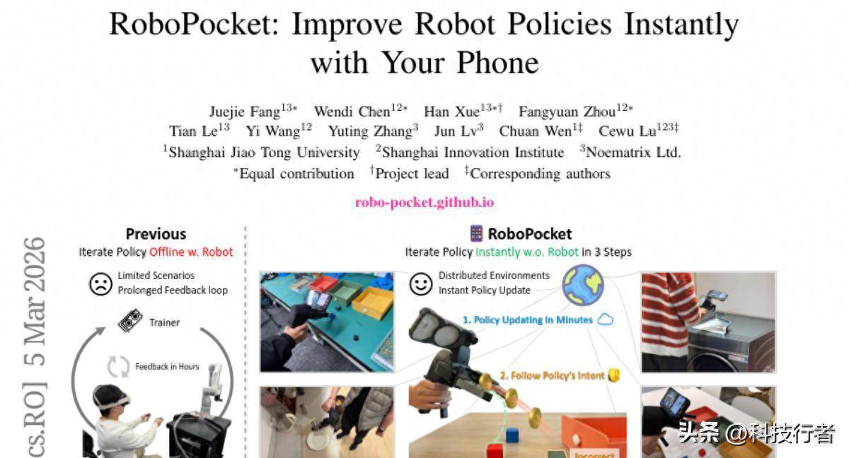 想象一下这样的场景:你想教会机器人整理房间,但传统方法需要先准备一台昂贵的机器人,然后在机器人身边反复演示动作,机器人学会后还要不断测试和修正。这个过程既费时又费钱,普通人根本无法参与。现在,上海交通大学的研究团队打破了这个限制,他们开发出了一套名为RoboPocket的系统,让普通人用一部智能手机就能训练出高质量的机器人。