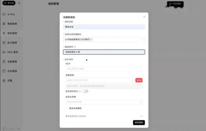 据介绍,得益于 Miloco 对大模型技术的场景化落地。作为智能家居未来探索方案,Miloco 将自研大模型能力部署到家庭边缘设备,结合米家摄像机的实时视觉信息,通过标准化的 MCP 协议封装,实现米家生态与 Home Assistant生态的无缝打通,支持第三方 IoT 平台接入,让 “用自然语言定义全屋智能” 从概念走向实用。
