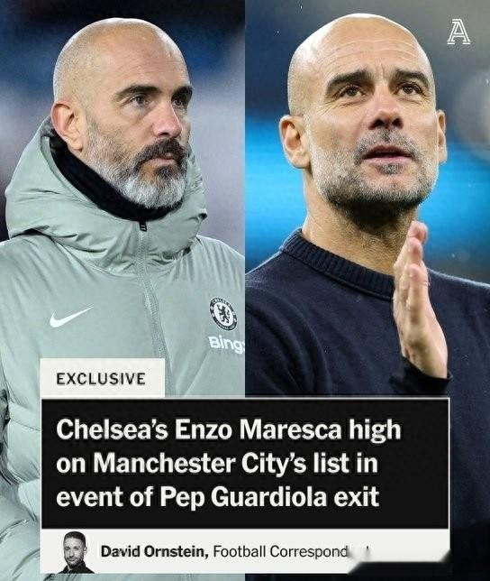 权威记者大卫·奥恩斯坦爆出重磅消息:如果瓜迪奥拉在2026年夏天离开曼城,切尔西现任主帅恩佐·马雷斯卡已成为曼城新帅的热门候选!这位与曼城渊源颇深的意大利教头,或许正站在职业生涯的关键十字路口。